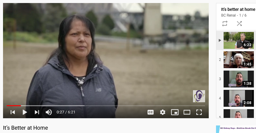 The videos are enabling us to bring the patient voice to our teaching in the BC Renal network’s home dialysis units and kidney care clinics around the province and via our patient education webinars.